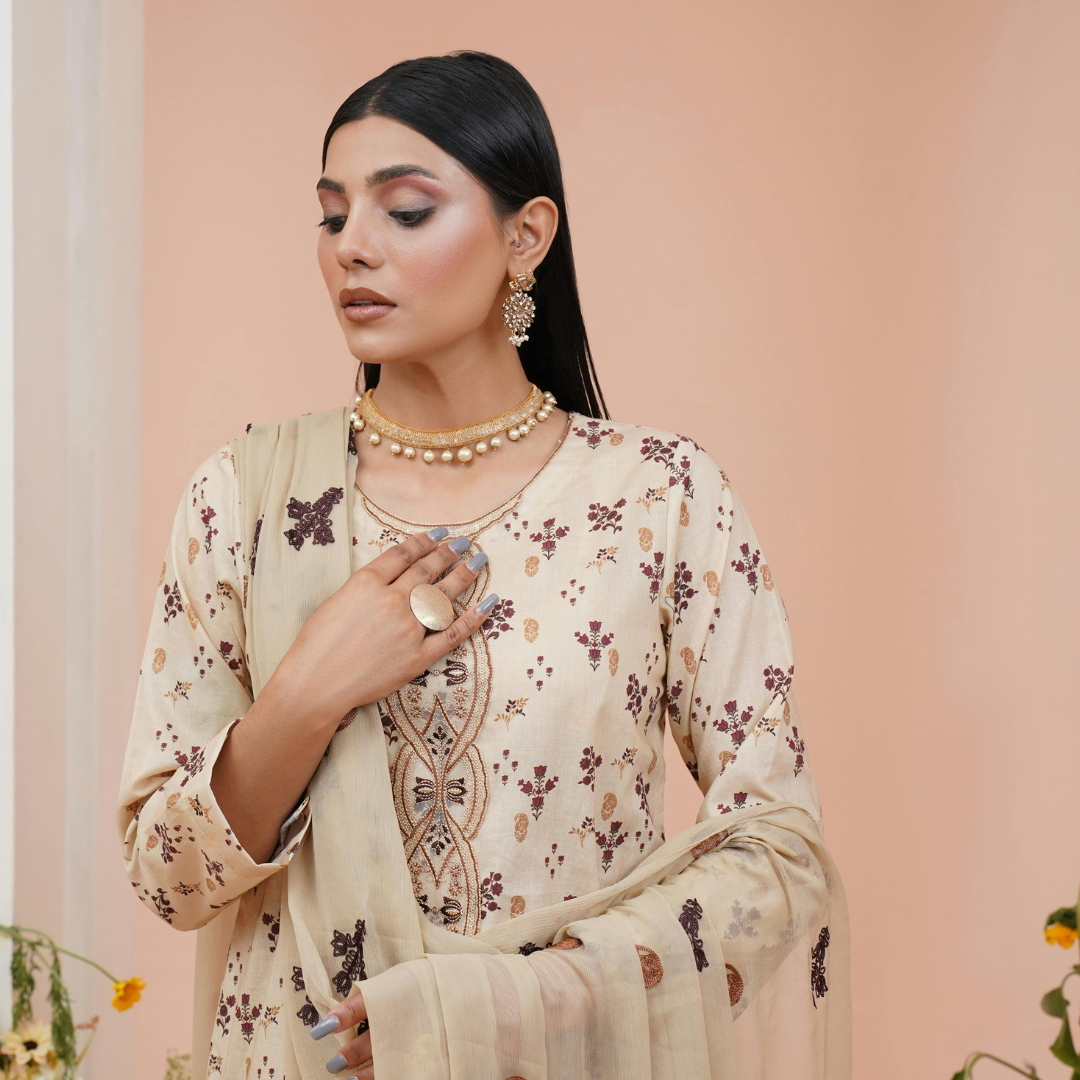 Premium Chiffon Lurex Floral Kurta – an elegant and timeless design.
